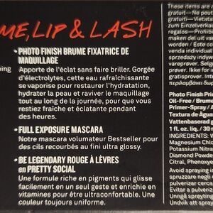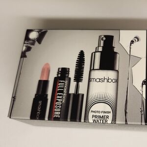 Smashbox photo finish primer water and mascara set. Lightweight primer preps skin for smooth makeup application. Deep black mascara adds volume and definition to lashes. Travel-friendly kit for everyday use.