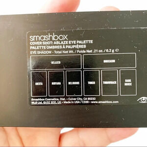 Smashbox eyeshadow palette in Ablaze. Colors include relaxed, siesta, moccasin, and dark horse. Never used. Holographic case.