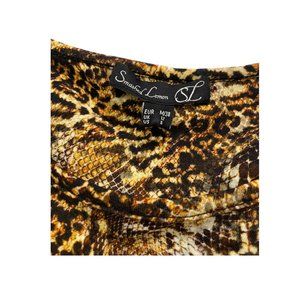 This beautiful dress from Smashed Lemon is a must-have for any fashion-forward woman. The yellow and black animal print is perfect for adding a pop of color to your wardrobe, while the ruffle accents and faux wrap style add a touch of femininity. The midi length and long sleeves make it versatile for any occasion, from a party or cocktail event to a casual day out or even in a work or business setting. Crafted from high-quality viscose, this dress is both comfortable and machine washable for easy care. The pullover style with a crew neckline and regular fit make it a great choice for women of all sizes. Whether you're dressing up or down, this dress is sure to turn heads.