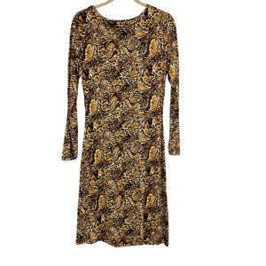 Smashed Lemon Crew Neck Faux Wrap Dress Size 8 Yellow and black
