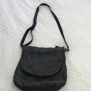 Smateria crossbody bag made with nylon netting. Main compartment has snap close with inside side zippered pocket and two slip pockets. Top has a full zippered compartment. Adjustable strap.