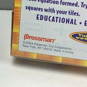 New in box Pressman Smath game. Makes math fun. Helps with addition, subtraction, multiplication and division. Never opened, still sealed. Marked 2004.