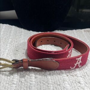Smathers & Branson Alabama needlepoint Belt (Garnet) Solid Brass Bucket Size 38. Stylish red canvas belt featuring a brass buckle and leather accents. Perfect for casual wear. NWOT