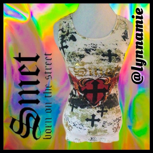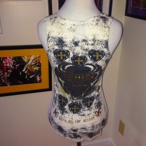 NWOT, Smet by Christian Audigier gold printed white tank!! Very cool design on front and back!!