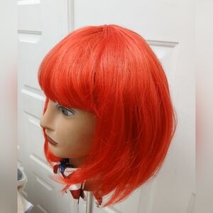 Smiffys Partyrama 12in Red Short Bob With Fringe Bangs Hair Wig. has been tried on..and package is kinda smushed.