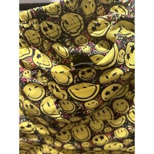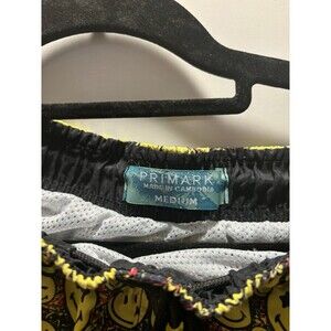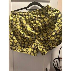 Size medium smile emoji swim trunks mesh lining and back velcro pocket with elastic waist with draw string… these are sure to get a giggle