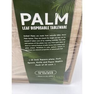 Smileaf Palm Leaf Squeare Plates,Forks, Spoons And Knives Pack 25 Each NEW