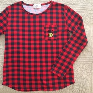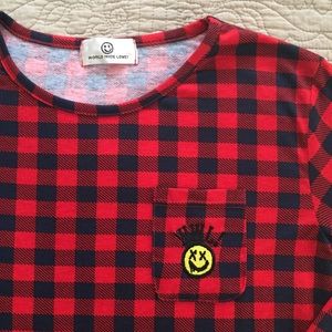 The cutest longsleeve top for layering and wearing indoors when it's too warm for a coat but the a/c is still too chilly. Embroidered smiley gives u trendy y2k flavor. From Harajuku, Japan brand World Wide Love!