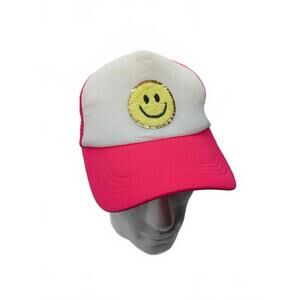 Smiley Face Baseball Hat Cap Glittery Sparkly Pink White OSFA Snapback Trucker