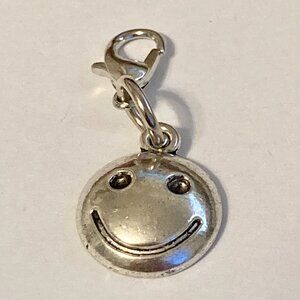 Smiley Face Clip On Charm For Bracelet Zipper Pull Bag Silver Tone Smile Happy