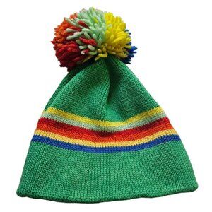 Smiley Hats Sparks Nevada Beanie Wool Green Rainbow Stripe Winter Ski Snow Pom