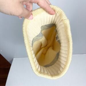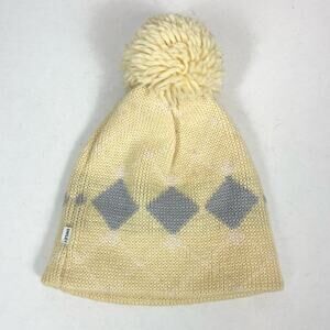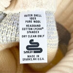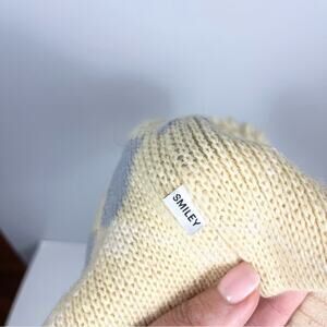 Smiley Vintage Wool Beanie Hat with Pompom Unisex One Size Cream and Gray