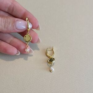 These elegant gold smiley face earrings add a touch of celestial charm to any outfit. Perfect for any occasion.