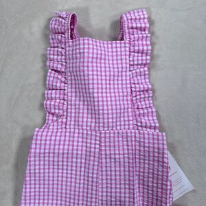 Smiling Button Kids 4 Flutterall Romper Pink White Gingham Seersucker Ruffle New