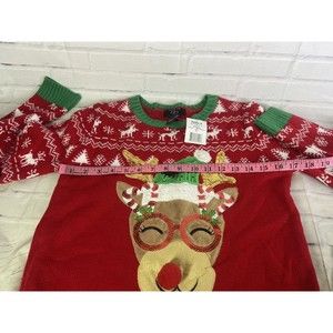 Up for grabs is a brand new Smiling Reindeer Embellished Christmas Holiday Sweater Girls Size XL. Never worn or used. Measurements Laying flat are included in photos, PLEASE compare them to your own for proper fit! Please refer to all photos. Ask any questions prior to purchasing. Thanks!