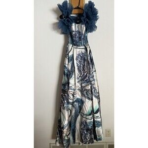 Smilprince Evening Gown Formal Dress Size XS US 2 EU 34 A-line White Blue Print