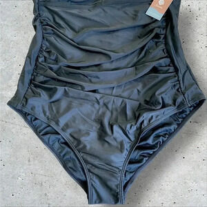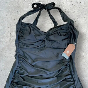 Smismivo New One Piece Swimsuit Size XXXL Black Halter Tummy Control Ruched