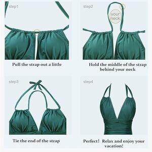 Swimsuit can shift wearing style between sexy V Neck and modest keyhole in seconds. Halter One Piece Swimsuit with Ruched pattern in the torso accentuates your curves and hides imperfections while still being flattering.