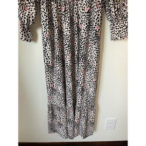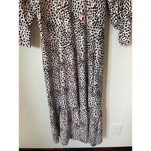 Smith & Quinn Leopard Floral Print Marigold Ruffle Long Sleeve Midi Dress Small