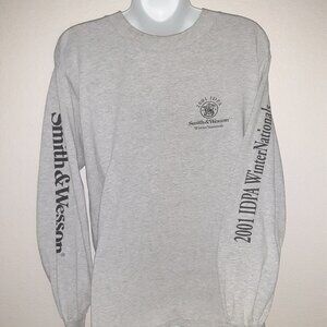Smith & Wesson IDPA Long Sleeve Gray Tee Shirt * Med Large * Graphics on Sleeves