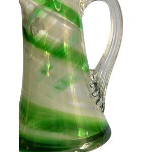 Smith's Old Timer Green & White Swirled Glass Pitcher With Ruffled Rim 8 1/2"