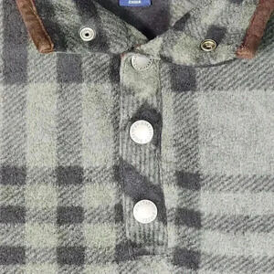 Smith's Workwear Men's Henley Fleece Large Olive Black Plaid Long Sleeve