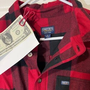 Smith’s Workwear Red and Black Plaid Men's Shirt - Medium