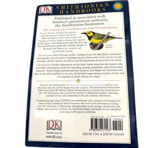 Birds of North America: Eastern Region includes 706 species-all birds known to breed east of the 100th meridian on the United States & Canada, as well as regular visitors and vagrants to this region. The Smithsonian Handbook is the first identification guide that includes details of the bird's life history in a concise & user-friendly format. Each full-page profile combines a precise description, annotated photographs, and artworks to highlight the key field marks of the species in each plumage. Similar species are shown & distinguishing characteristics are noted. Further information on the bird's habits describes the typical song and other vocalizations, behavior, breeding, nesting, population, & conservation concerns. Typical flight patterns & nest locations & shapes are described with clear icons, and amplified in the text. Each bird's range during summer, winter, & on migration is clearly shown on a map
