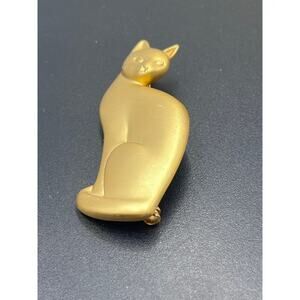 Smithsonian Institution Matte Brushed Gold Tone Sleek Cat Pin Brooch