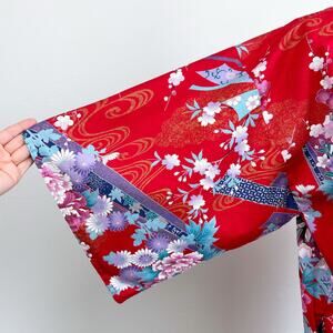 Smithsonian Institution Red Floral Kimono Yukata Robe