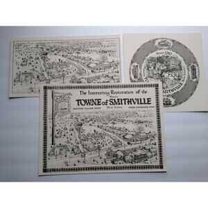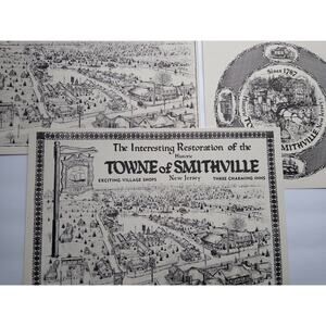 Vintage set of (3) different thick stock paper prints or menu artwork sheets? All is great clean condition with only minor edge wear. They show the Smithville, New Jersey village and a sign that reads Historic Smithville Inn Entertainment 1787. The largest one is about 10.5" X 15". The smallest is 10" X 10" size. Two prints are signed by artist Ed Sheetz.