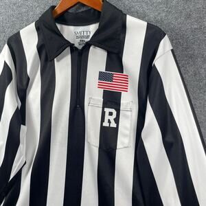 Smitty 1/4 Zip Referee Shirt Men's 2XL Black/White Long Sleeve Stretch Mesh