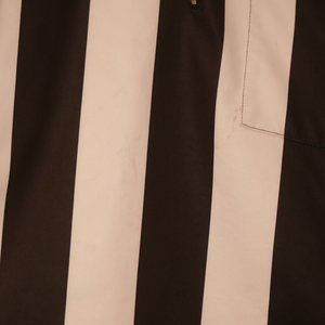 Has some slight outdoor stains on the front. Please see photos for detail. Really great overall shape aside from the couple stains. Fits slightly loose medium. Made in the USA.