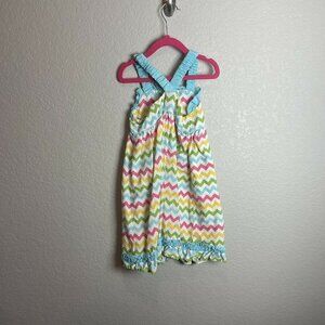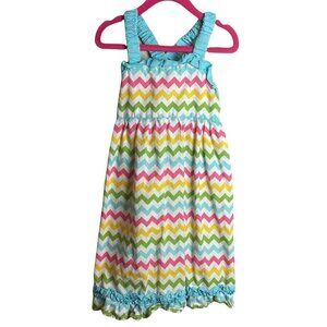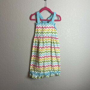 Smockdot Kids Girls 5 Dress Shift Chevron Easter Ruffle Blue Pink Sleeveless