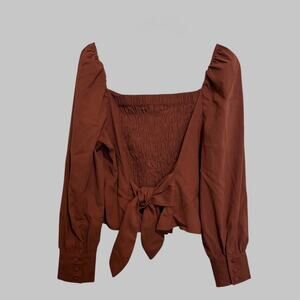 Smocked Back Tie Bohemian Rust Sweetheart Cropped Puffed Sleeves Autumn Blouse L