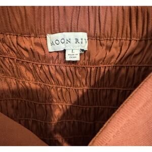 The Moon River Smocked Back Tie Bohemian Rust Sweetheart Cropped Puffed Sleeves Autumn Blouse L