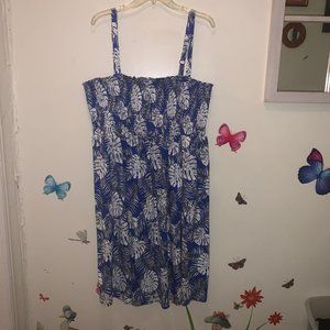 Super cute and very comfortable summer dress. Runs a bit large, smocked bodice with shirring beneath. Adjustable straps. I bought this online and it didn't come with any tags. I only wore it to try it on. I'm typically an 18/20 and this was a bit on the large side for me.