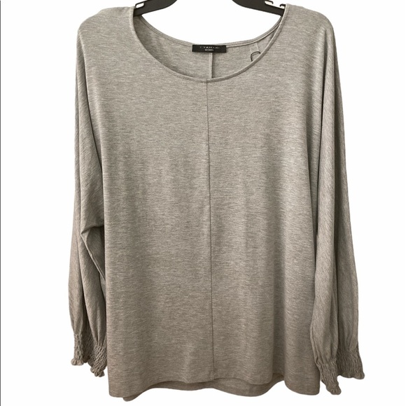 Tahari Long Sleeves Smocked Cuff Top. Plus Size 1X. BNWT. Gray. Crew neck. Smocked cuffs. Material: Jersey Knit.