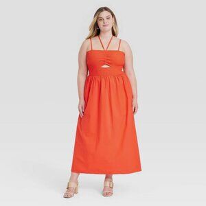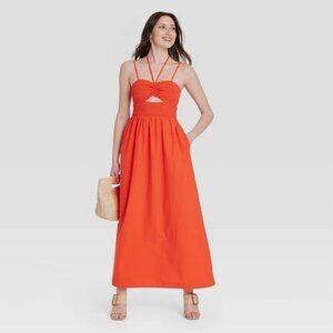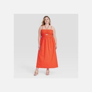 Smocked Cut-Out Maxi Dress Casual Sundress- Universal Thread Red Orange XL