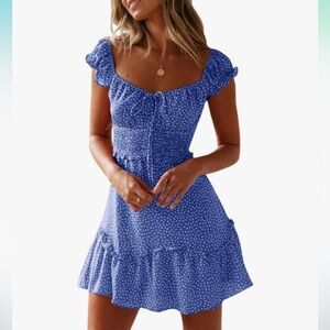 Smocked Dress Ruffle Floral Tie Front Boho Short Dresses