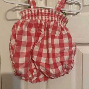 Pink and white gingham bubble romper with smocked front