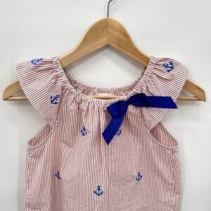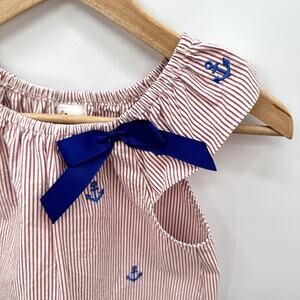 Smocked Giraffe Red and White Striped Anchor Print Dress // 7