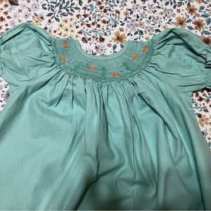 Charming kids dress in a delightful green shade, featuring intricate embroidery. Perfect for any occasion.