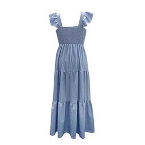 Smocked Milkmaid Dress Womens Small Blue High Waisted Cottage Fairy Sundress