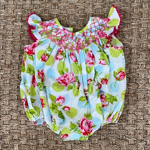 Super cute smocked bubble. Washed in gentle detergent and hung to dry