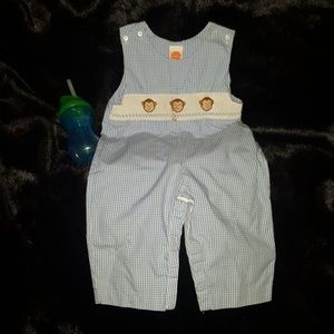 Cute little jumper size 18 months middle monkey looks like there is a stain but it is a run from the brown on the hair of the monkey love to bundle..#2