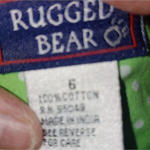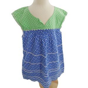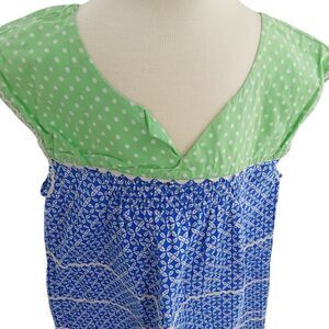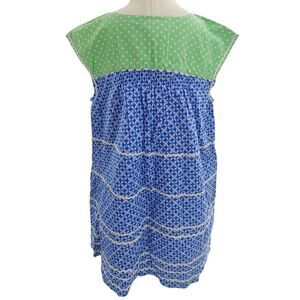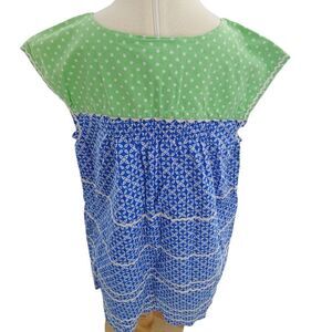 Smocking & rickrack green polka dots & blue cotton dress size 6