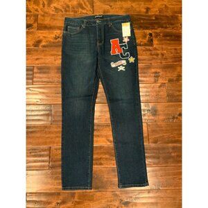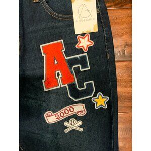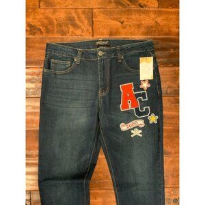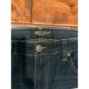 Smoke & Ash Blue Slim Straight Jeans Size 34 Dark Wash Denim Embroidered Patch