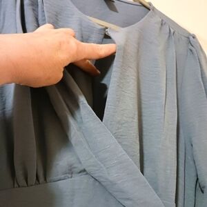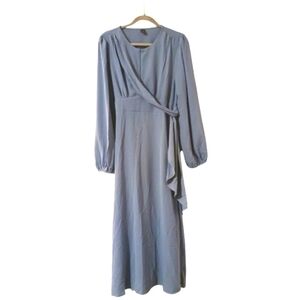 Smoke Blue Gauzy Maxi Dress Elastic Waist Ruffle Tie Flowy Size Large