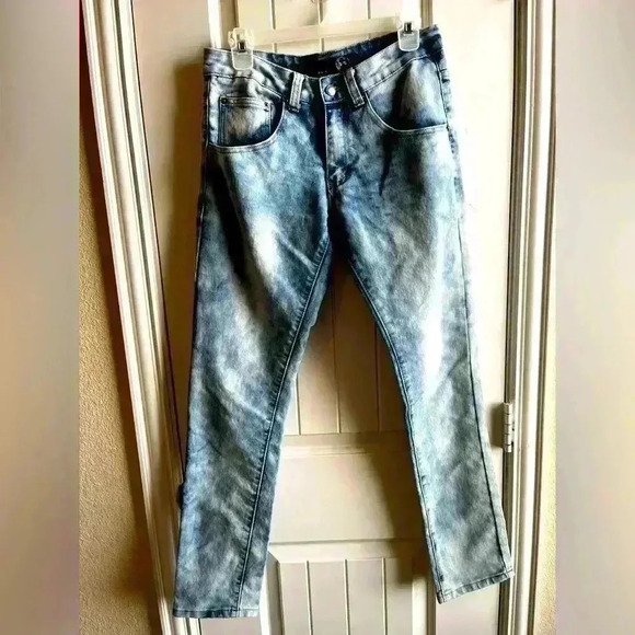 Cool Smoke Rinse Men’s Jeans by Finest Threads Luxury Goods. Slim straight jeans. Great shape. 2 TINY pin dots on the back leg of a pants as pictured.